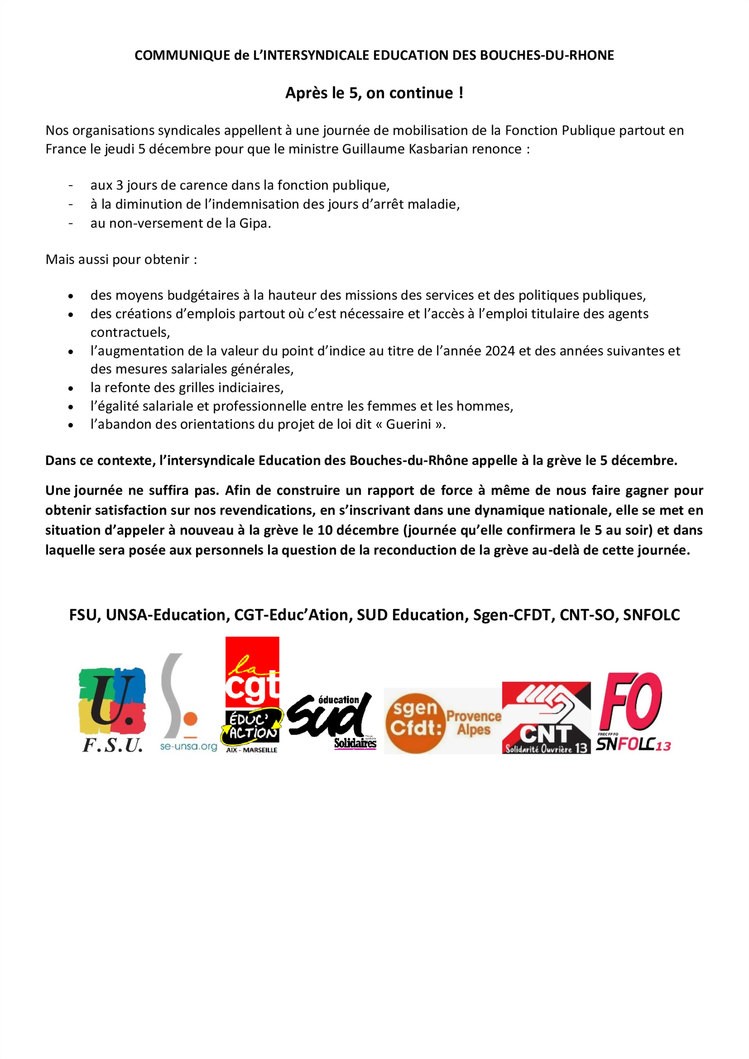 SNFOLC 13 - Mobilisations - Publié le 01/12/2024 à 20h42.